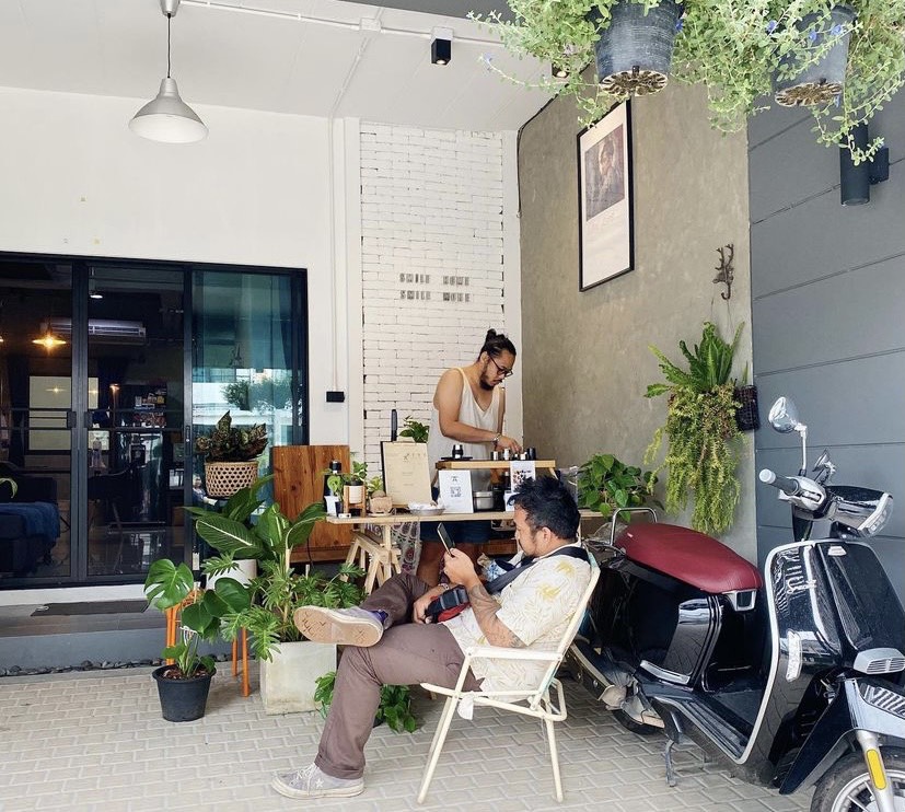 ร้านกาแฟที่มาจากความชอบกินกาแฟของบิวและเบน ทั้งสองเลยไปเลือกเมล็ดกาแฟ ซื้ออุปกรณ์ และขั้นตอนสำคัญสุด ลองเบลนด์กาแฟเอง ลองผิด ลองถูกเพื่อหาส่วนผสมที่เป็นรสชาติที่ทั้งสองชอบที่สุด “ได้เมล็ดกาแฟจากน่านและเชียงใหม่เป็นตัวเริ่ม มาลองคั่วแบบที่เราชอบ เราชอบเปรี้ยวนิด มีกลิ่นผลไม้ ดอกไม้หอมๆ” จนเจอความลงตัวในรสที่ชอบ ก็เริ่มเปิดบ้านขายกาแฟ คนมาซื้อก็จะเป็นคนในหมู่บ้าน ซื้อกันจนเป็นขาประจำ เป็นคอมมิวนิตี้เล็กๆ ของทั้งสอง