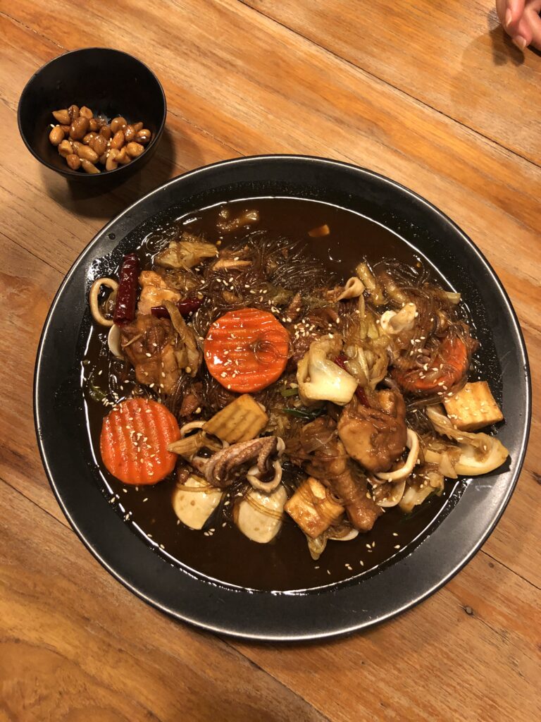 จิมดัก หรือที่คนไทยเรีกยติดปากว่า “ไก่ตุ๋นซีอิ๊ว” เป็นอีกเมนูที่คนไทยเวลาไปเกาหลีต้องไปทานให้ได้ มีส่วนผสมของไก่ วุ้นเส้น พริก แครอท มีรสชาติหวานๆ เค็มๆ เผ็ดนิดหน่อย เป็นเมนูที่คนเกาหลีนิยมรับประทานมากกกในช่วงฤดูร้อน