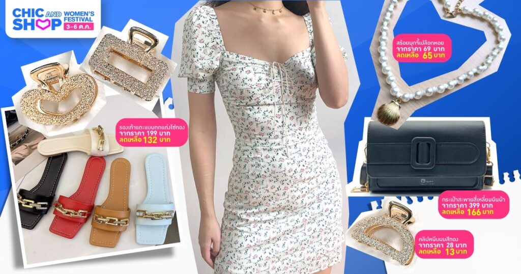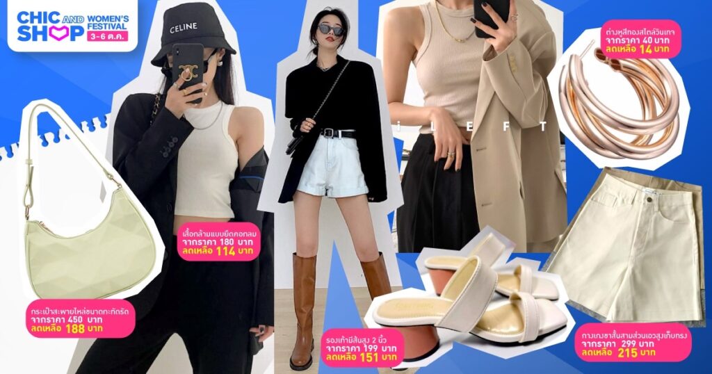 ของดีเพียบบบ! สินค้าแฟชั่นลดสูงสุดถึง 80% ที่ว่าถูกแล้วยังถูกลงไปได้อีก จำกัดงบทั้งตัวหัวจรดเท้าเอาไว้ได้เลย รับรองว่าราคาดีจนน่าตกใจ แต่อย่าเพิ่งช็อกกับดีลเด็ดไป มาช้อปกันให้ทันดีกว่า ระหว่างช้อปก็อย่าลืมว่ามีแฟลชคูปองกว่า 20% ให้เก็บกันอยู่เรื่อย ๆ ทุกวัน 10 โมงเช้า ช่วงวันที่ 3 – 6 ต.ค 64 นี่คือดีลดี ๆ จากแคมเปญ Chic & Shop Women’s Festival ที่จัดสินค้าแฟชั่นสำหรับสาวๆ มาให้ในราคาที่ทุกคนเอื้อมถึง