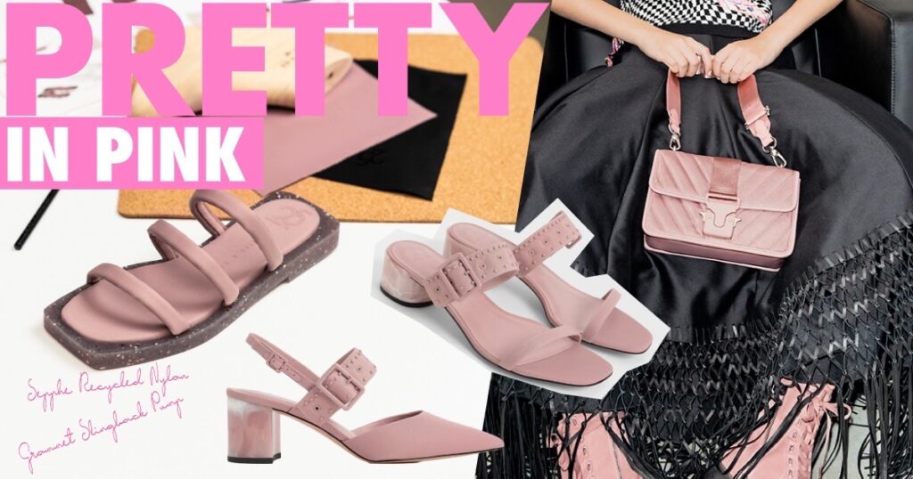 จะใส่ชุดสีอะไรก็ได้ ดำก็ได้ น้ำเงินก็ดี หรือมีสีโปรดในใจก็หยิบมาใช้ในลุคนี้ซะเลย แล้วเติมไอเท็มสีชมพูลงไปทั้งกระเป๋าและรองเท้า Sonia Recycled Nylon Padded Bag จะทำให้ลุควันนี้ดูซอฟลง ถ้าอยากเพิ่มความละมุนลงไป แล้วแมตช์กับรองเท้าได้ทั้ง 3 รุ่น Sepphe Recycled Nylon Grommet Slingback Pump, Sepphe Recycled Nylon Grommet Mules หรือ Arabella Recycled Nylon Slide Sandals ขึ้นอยู่กับว่าจะไปที่ไหน ไม่มีกฎเกณฑ์เพิ่มหรือตายตัว