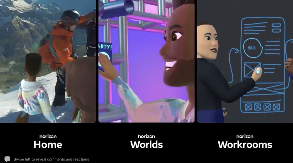 Horizon Home / Horizon World / Horizon Workplace / Horizon Marketplaceโลกเหล่านี้จะกลายเป็นฐานของโลกเสมือนจริงในอนาคต (ถ้าคุณเคยเล่นเกมมาบ้าง คุณอาจมองว่ามันคือโลกของ minecraft +Robloxก็ได้)บ