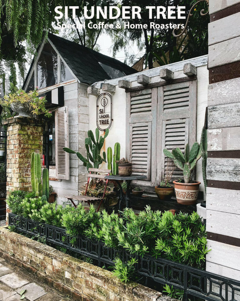 หนึ่งในร้าน Hidden มากๆๆๆ ถ้าขับรถผ่านก็จะไม่มีทางรู้ว่านี่คือร้านกาแฟ แต่เพราะความลับๆ นี่ล่ะ ร้านนี้เลยมีเสน่ห์ในใจเรา เจ้าของร้านพี่อั๋น เป็นนักจัดสวน พี่อั๋นเพิ่งเปิดมุมกาแฟมาได้ปีเดียว ร้านเป็นไปตามชื่อมากๆ นั่งใต้ต้นไม้ ดูถ่อมตัว แล้วมีอะไรให้พักพิงใจ ร้านนี้ฟีลสวนสไตล์อังกฤษ พี่อั๋นทำทุกสิ่งด้วยมือตัวเอง ร้านเล็กมากนะ แต่สามารถทำให้เลื้อยเดินไปเดินมาได้ แล้วชอบมากมีมุมให้สั่งกาแฟอยู่หน้าร้าน เหมือนบ้านในชนบทอังกฤษน่ารักๆ แล้วร้านนี้แสงสวยตลอดเวลา มาถ่ายรูปยังไงก็หน้าเด้ง แต่งตัวโทนสีเข้ากับร้านหน่อย สามารถมาสบัดกระโปรงประหนึ่งอยู่ในคาเฟ่ในอังกฤษได้เลย