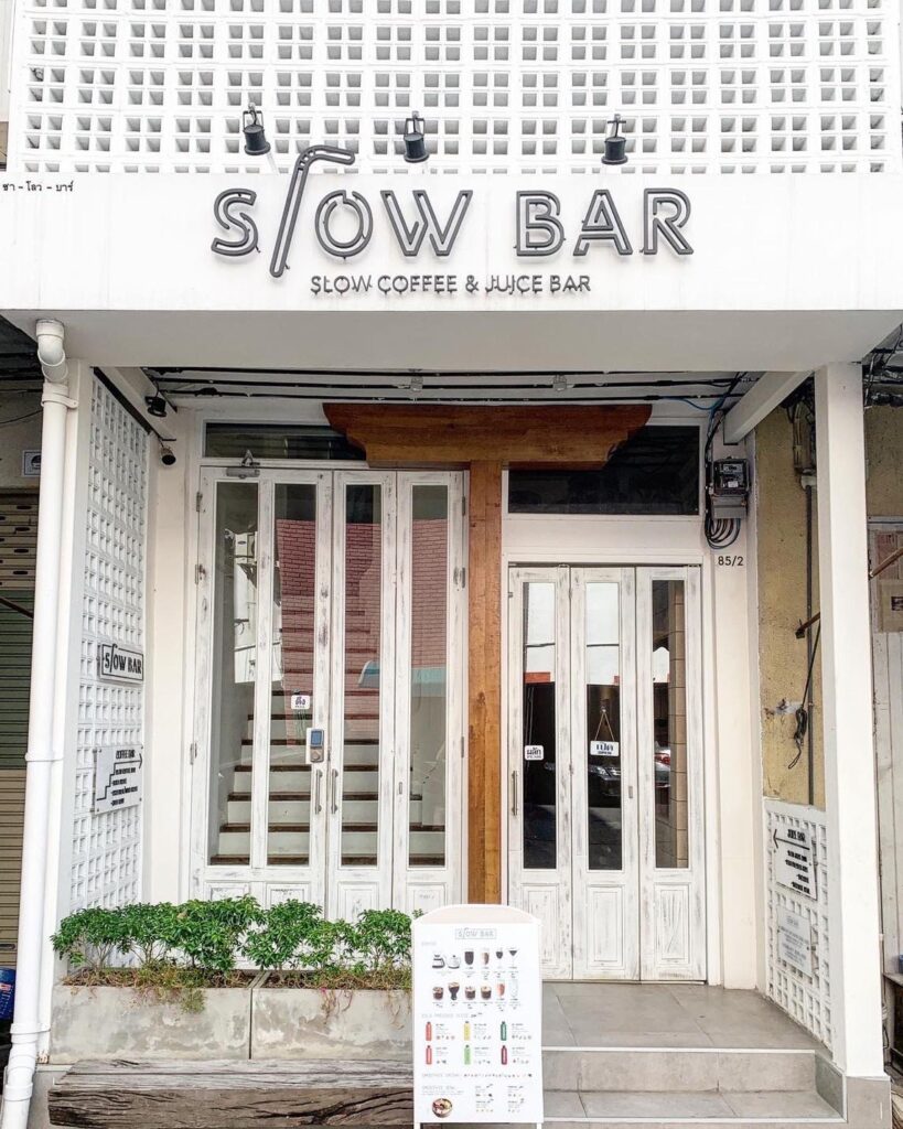 ร้านกาแฟเล็กๆ ในย่านเมืองเก่า สวยงามทุกย่างก้าวตั้งแต่เดินเข้ามาในร้านนี้ เขาบอกว่าคือ Slow Bar ก็เลยไม่ต้องรีบนะ เดินขึ้นไปเลือกนั่งชั้นบนตรงระเบียงคือเริ่ดสุดแล้ว ที่นี่เหมาะกับมาเดทแล้วเปิดใจกันไปมา ยิ่งถ้ามาตอนแดดร่มลมตกหน่อย โรแมนติคจะตาย ชวนกันไปเดินเล่นวัดพระแก้ว แล้วเลี้ยวมาจิบกาแฟ กิน Juice ที่นี่เลย